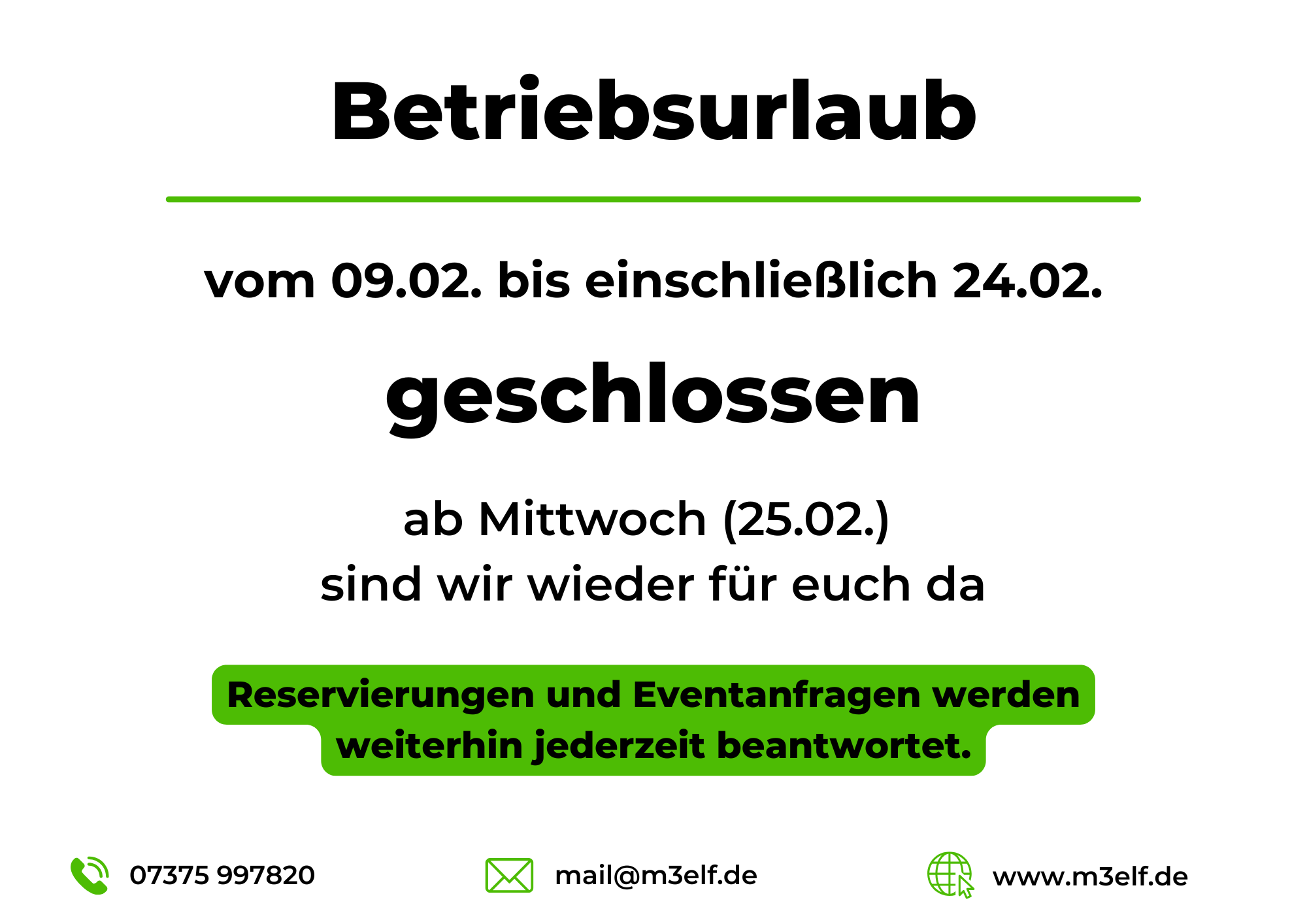 M3ELF ist die Location für Familienfeiern, Firmenevents, Vereinsausflüge und private Veranstaltungen unterschiedlicher Art.